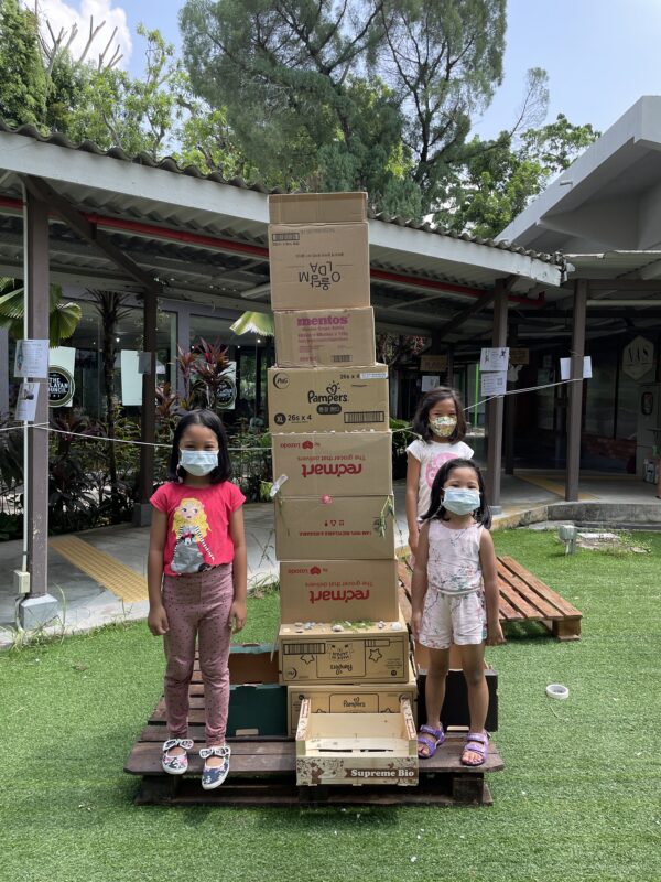 Our compost area is located behind a cluster of bamboo by the car park. Every weekend, our volunteers collect eggshells, vegetable and fruit scraps from nearby hawker stalls, restaurants, and hotels for the greens.
