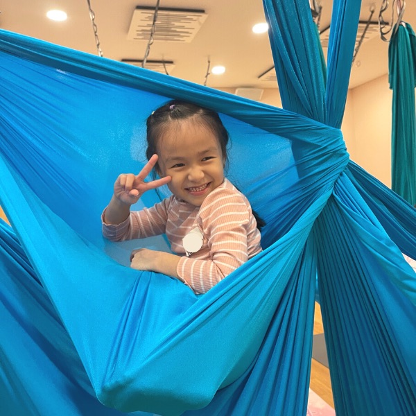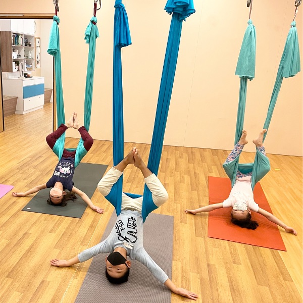 Aerial yoga enhances self-regulation by improving balance, focus, and spatial awareness. It decompresses the spine, boosts circulation, and builds self-confidence, all in a fun and therapeutic environment.
