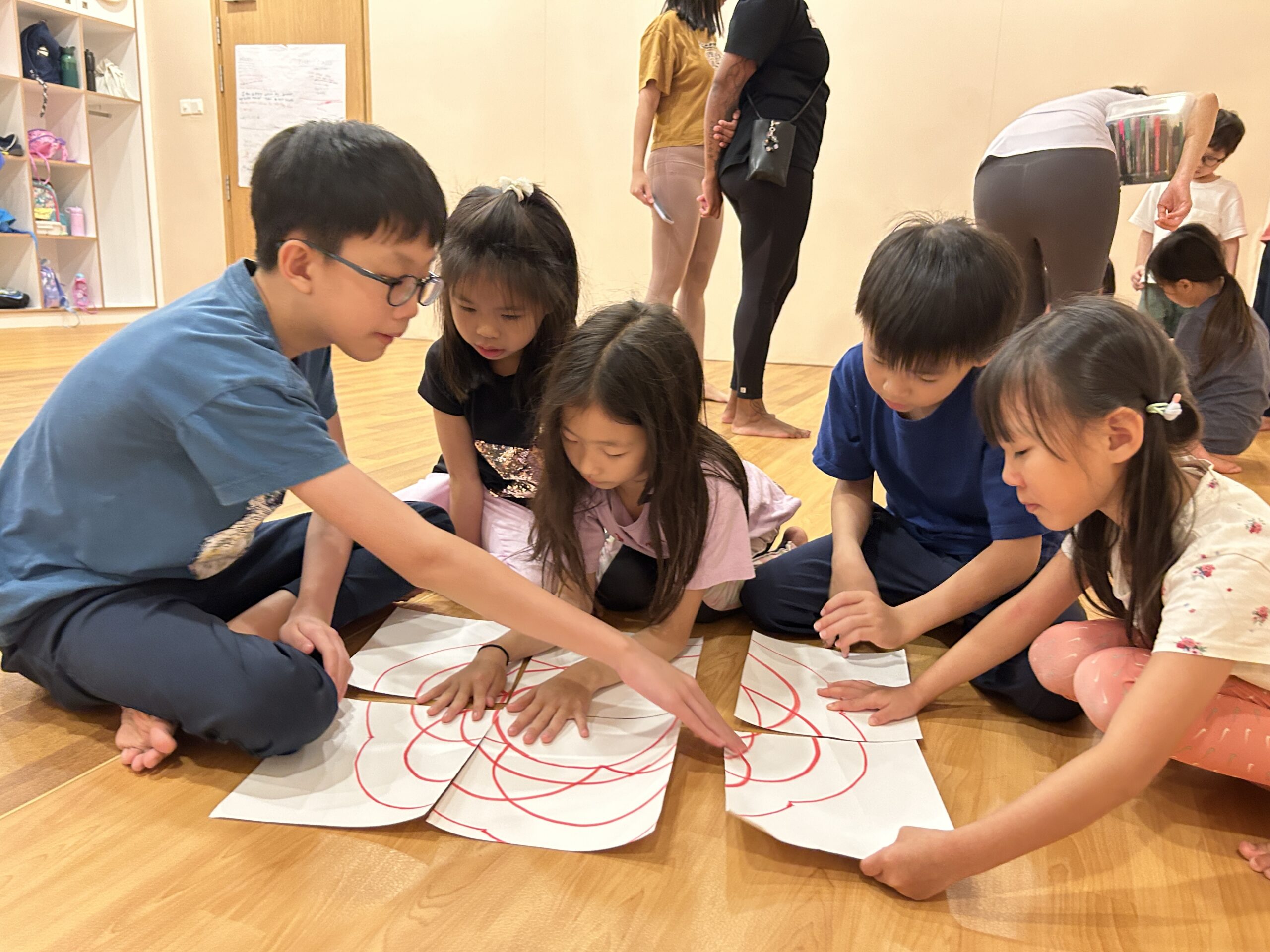 ✅ Explore body parts, location, personal space and their environment. Active use of arms, legs, trunk, hands, fingers, feet, and even toes and face through yoga, aerial play, and other physical activities.