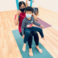 • Upside down with the help of gravity aligns and decompresses the spine, promotes blood circulation and a calming sensory to the brain.