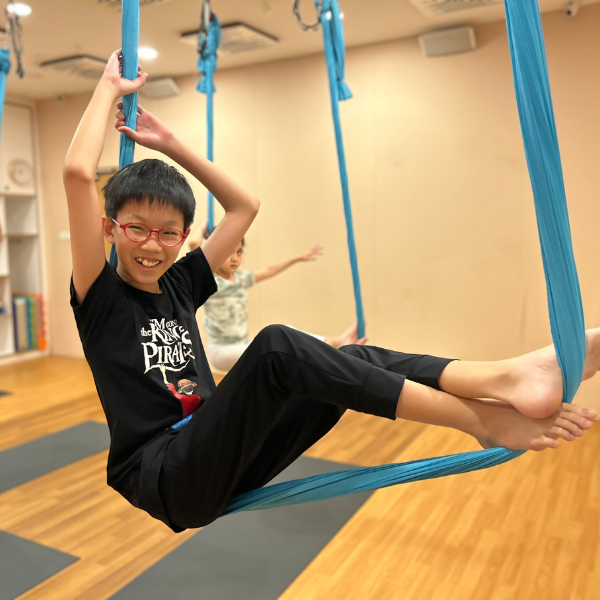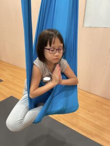 Mindfulness is at the heart of aerial and yoga. As kids get into various poses in the hammock, they become fully present in the moment, focusing on their breath and body alignment. Yoga or aerial yoga isn’t just about the poses or cool flips.; it’s a holistic practice that unites the body, mind, and soul. The physical postures help enhance flexibility, strength, and balance, while the breathing exercises calm the mind and improve focus. Together, these practice encourages self-acceptance and self-compassion, nurturing a healthy body image and promoting overall well-being. At the same time, this movement allows them to let go of worries about school and exams, promoting a sense of calm and relaxation. Life is full of ups and downs, and academic challenges are no exception. Mindfulness and yoga empower students to embrace failure as a stepping stone to growth. By teaching them to acknowledge their emotions without judgment, these practices equip our children with emotional resilience, allowing them to bounce back from setbacks with a positive outlook.